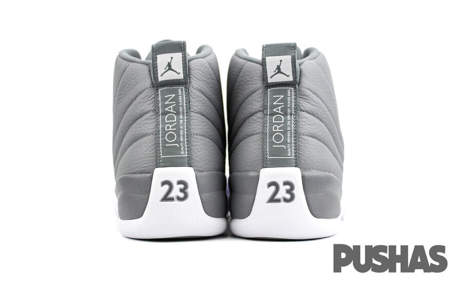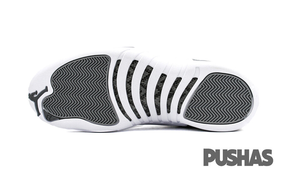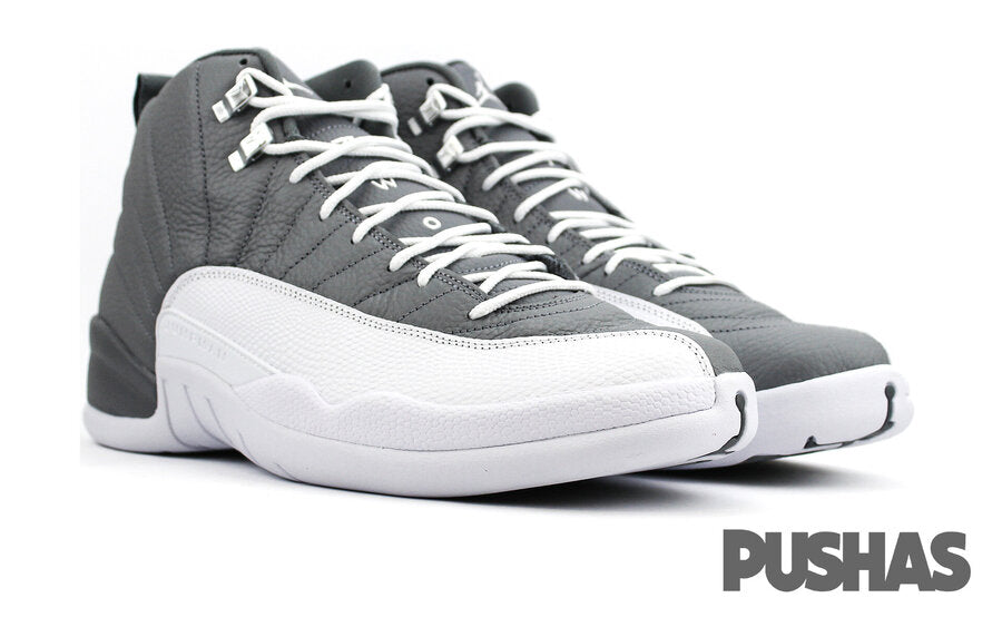 The Air Jordan 12 Retro "Stealth" updates the iconic design that brought Zoom Air cushioning to the Jordan line with a muted colour scheme. The upper is made of crushed grey leather and has a solid white lizard-textured overlay in addition to the 12's distinguishing stitching lines. On the tongue and heel tab, you can see the Jumpman logo. The mid-top is supported by a full-length Zoom Air unit, a lightweight Phylon midsole, a herringbone-grip rubber outsole, and a full-length Zoom Air unit.