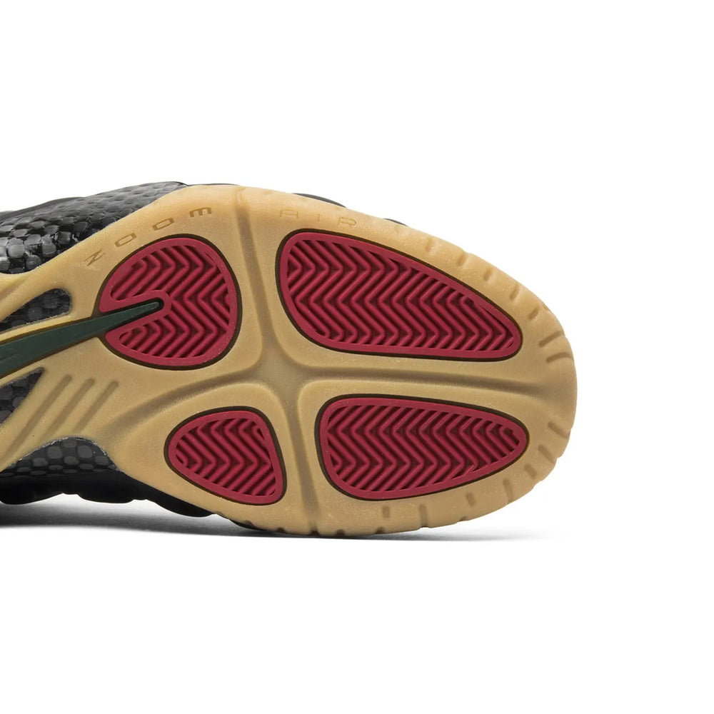 The Nike Air Foamposite Pro 'Yeezy' (2014) stands as one of the most distinctive and coveted iterations in the Foamposite lineage, seamlessly blending innovative design with cultural relevance. This bold release draws its inspiration from Kanye West's iconic Yeezy 2 sneaker, infusing a futuristic aesthetic with premium materials to captivate sneaker enthusiasts worldwide. Overview Crafted with the Foamposite Pro's signature molded upper, this sneaker features a matte black base complemented by carbon fiber accents for a sleek and dynamic look. Neon "Solar Red" graces the inner lining, delivering a vibrant pop of color reminiscent of the Yeezy 2 Solar Red. The outsole steals the show with its glowing green hue, enhancing the design's futuristic vibe and making it a standout feature under low light. Subtle Nike branding across the heel and toe maintains the classic Foamposite identity, while the durable construction ensures its performance matches its eye-catching design. Key Highlights • Inspired by Kanye West’s Iconic Yeezy 2 Design: Incorporates the bold elements and color blocking synonymous with the Yeezy 2, making it an instant hit among sneakerheads. • Glow-in-the-Dark Outsole: A vibrant green outsole that glows in low light, adding a striking visual effect and enhancing the shoe’s uniqueness. • Premium Foamposite Material: Provides unmatched durability and support, making it ideal for both performance and casual wear.
