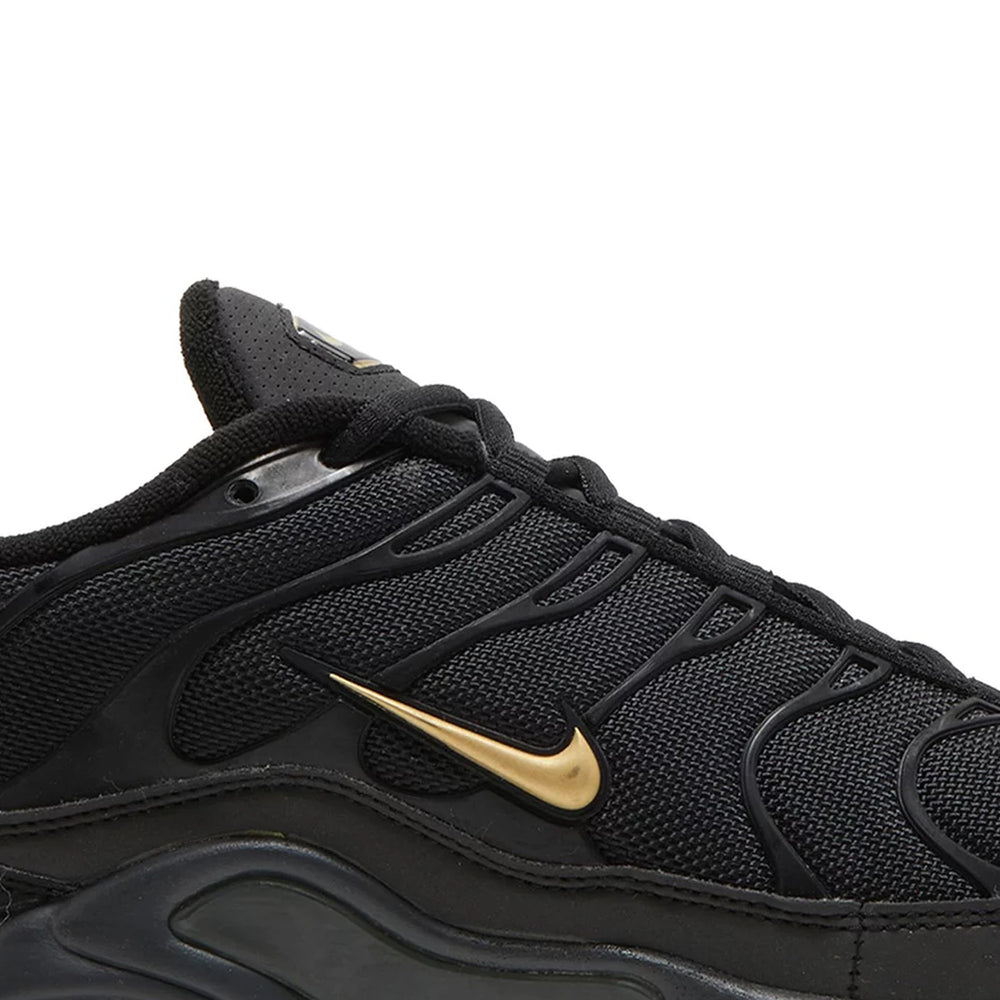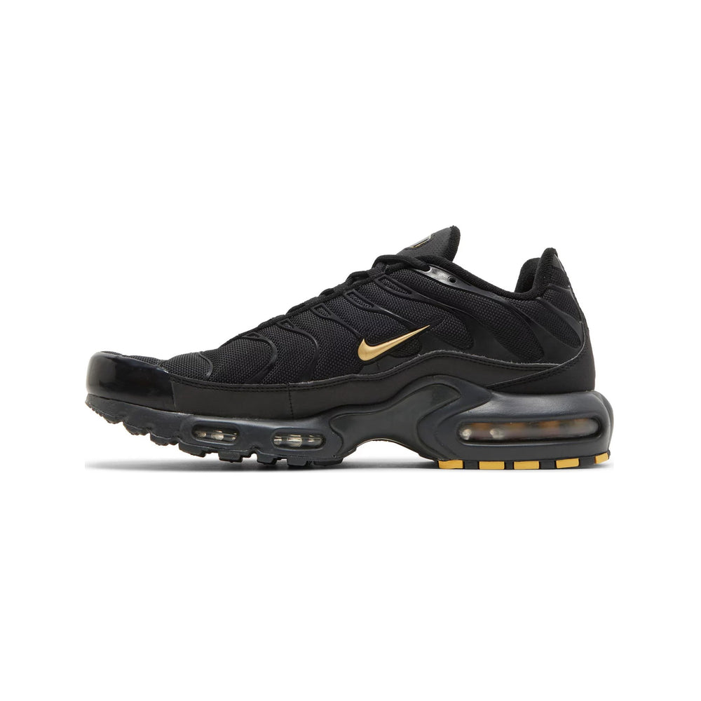 • Luxurious Black and Gold Colorway: The sophisticated black base paired with opulent gold accents makes the Nike Air Max Plus 'Black Gold' a standout in both fashion and performance spheres.