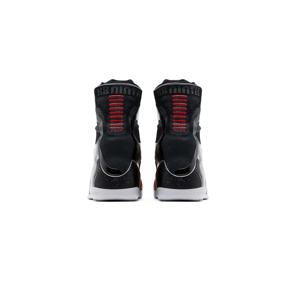 The 'Masterpiece' showcases a dynamic multicolor Flyknit upper, delivering both a striking visual appeal and lightweight support. Integrated Flywire technology ensures a secure fit through the midfoot, while a carbon fiber heel counter provides exceptional stability. A notable design element includes nine red embroidered details on the heel, symbolizing Kobe Bryant's sutures following his Achilles injury, a testament to his resilience and determination. This Protro version upgrades the cushioning system by replacing the original Lunarlon midsole with responsive React foam, offering enhanced comfort and performance on the court.