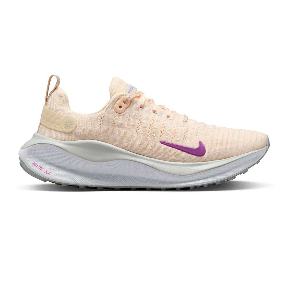 The Nike React X Infinity Run 4 'Guava Ice Vivid Purple' Women's (2023) redefines the fusion of innovative running technology with bold, contemporary aesthetics. Designed to deliver unparalleled comfort and performance, this latest iteration combines Nike's advanced React foam with a vibrant color palette that stands out both on the track and in casual settings. Overview Crafted with a breathable Flyknit upper, the 'Guava Ice Vivid Purple' edition features a pastel "Guava Ice" base, complemented by vivid "Purple" accents on the Swoosh and heel for a dynamic visual impact. A reinforced Flywire system ensures a secure fit, while the midsole incorporates the signature React foam for an ultra-responsive ride. The rocker geometry promotes a smooth transition, reducing fatigue during long-distance runs. Reflective detailing enhances visibility in low-light conditions, and a durable rubber outsole offers superior traction across varied terrains, making this sneaker a versatile choice for runners and lifestyle enthusiasts alike. Key Highlights • Advanced React Foam Technology: Provides superior cushioning and energy return, ensuring long-lasting comfort and performance. • Breathable Flyknit Upper: Lightweight and flexible, offering optimal ventilation and a secure, adaptive fit. • Eye-Catching Colorway: The pastel "Guava Ice" tones contrast vividly with "Vivid Purple" accents for a stylish and modern look.