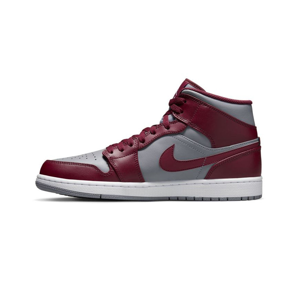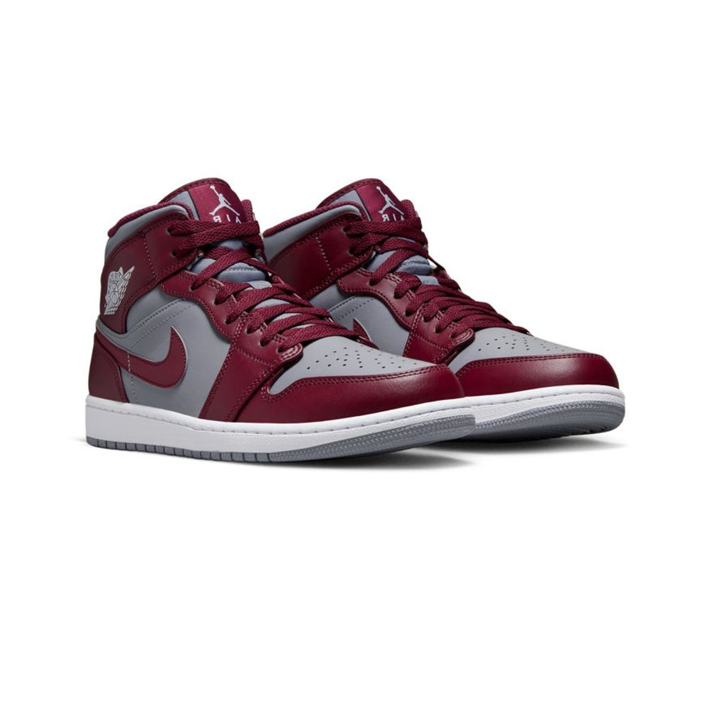 The Air Jordan 1 Mid 'Cherrywood Red' (2022) delivers a refined yet bold update to one of Jordan Brand’s most enduring silhouettes, blending premium materials with an understated color palette that speaks to modern streetwear sensibilities. This release stands out for its deep red tones contrasted with neutral overlays, offering a sophisticated twist to the classic Air Jordan 1 Mid form. Overview The Air Jordan 1 Mid 'Cherrywood Red' (2022) features a smooth leather upper combining rich “Cherrywood Red” panels with soft “Cement Grey” overlays for a balanced, timeless appeal. The deep red hue dominates the toebox, quarter panels, collar, and outsole, while the grey overlays extend across the forefoot, eyestays, and heel, creating a subtle contrast that enhances the silhouette’s structure. The Swoosh and Wings logo appear in matching Cherrywood tones, unifying the colorway with understated cohesion. Completing the design, a clean white midsole provides a crisp visual break and classic grounding for the model’s heritage aesthetic. Released in December 2022, this iteration underscores Jordan Brand’s continued ability to reinvent its legacy designs with fresh yet wearable color stories. Key Highlights • Timeless Cherrywood and Cement Grey Palette: Merges rich red tones with neutral grey overlays, creating a balanced and versatile look suitable for both casual and elevated wear. • Premium Leather Upper: Crafted from durable leather that enhances longevity while providing a smooth, premium finish. • Signature Air Jordan 1 Mid Silhouette: Retains the iconic mid-cut design with classic branding, including the debossed Wings logo and perforated toe box for breathability.