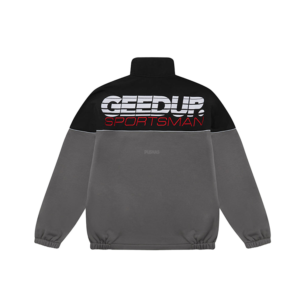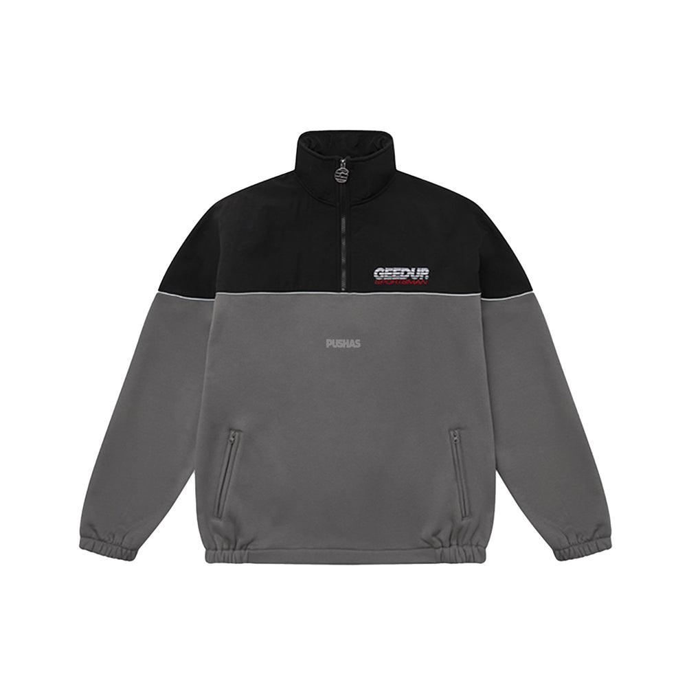 The Sportsman QTR-Zip features a two-tone design, combining black and grey tones for a clean, understated look. The front quarter-zip closure allows for customizable ventilation and ease of wear, while the lightweight polyester blend fabric ensures comfort without sacrificing durability. Thoughtfully designed for movement and breathability, this pullover also includes ribbed cuffs and a hem to retain shape and structure. The simple yet refined Geedup logo branding on the chest further emphasizes the brand's signature approach to subtle yet impactful streetwear.