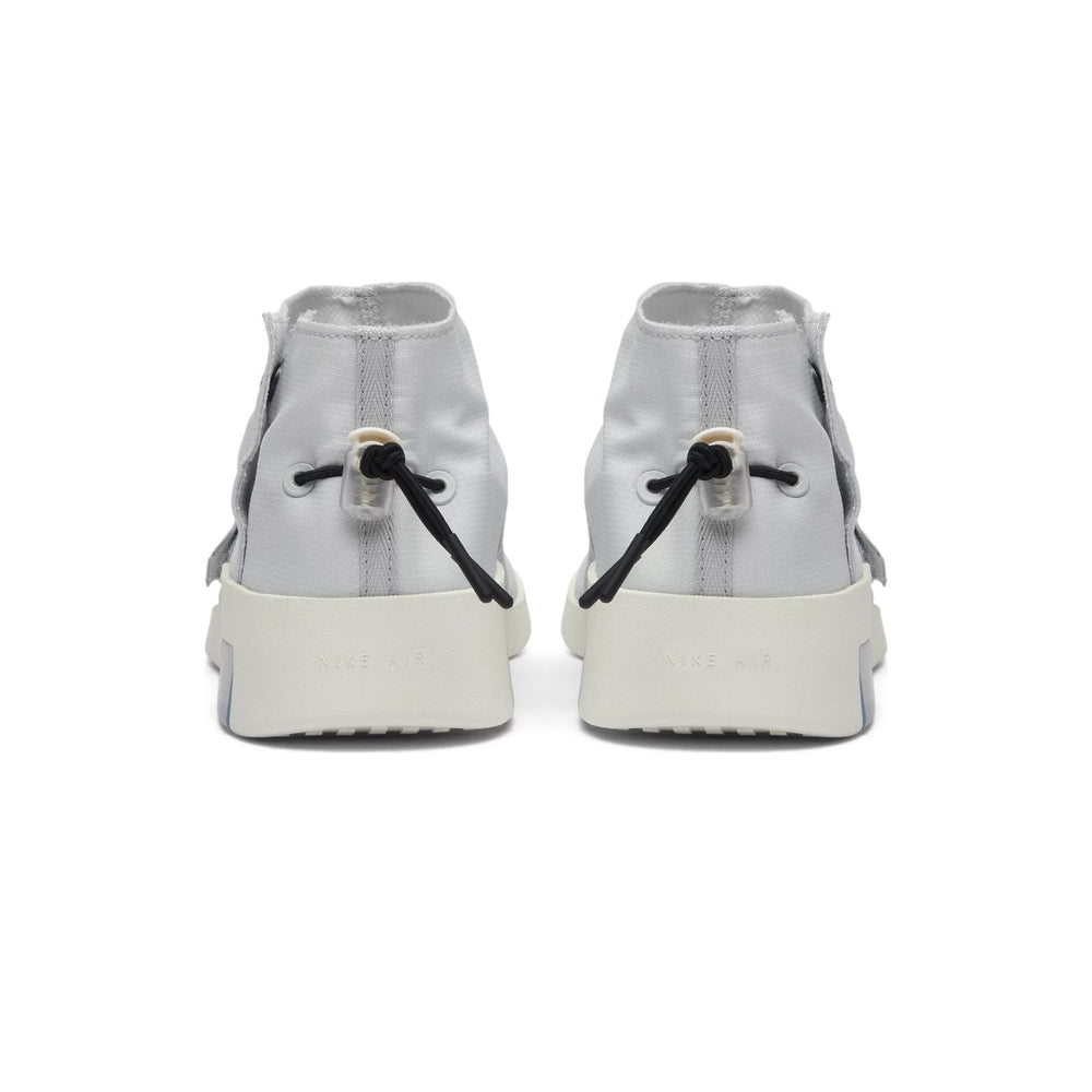 Crafted with a sleek "Pure Platinum" textile upper, the Moccasin showcases a slip-on design complemented by an adjustable midfoot strap, ensuring a secure fit. The silhouette's simplicity is enhanced by its innovative use of materials, combining a lightweight feel with a premium finish. The sneaker’s light grey hue extends across the entire upper, creating a monochromatic look that is both subtle and striking. A white Fear of God-branded midsole, featuring double-stacked Zoom Air cushioning, provides unparalleled comfort and a slight elevation. The heel is adorned with a reflective strip, adding a touch of visibility and modernity to the otherwise understated design. The Nike Air Fear Of God Moccasin 'Pure Platinum' embodies a blend of athletic performance and high-end streetwear, making it a versatile piece for any wardrobe.