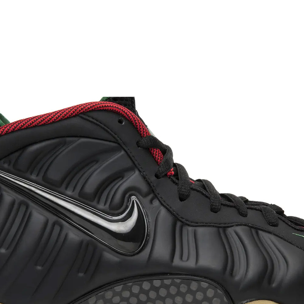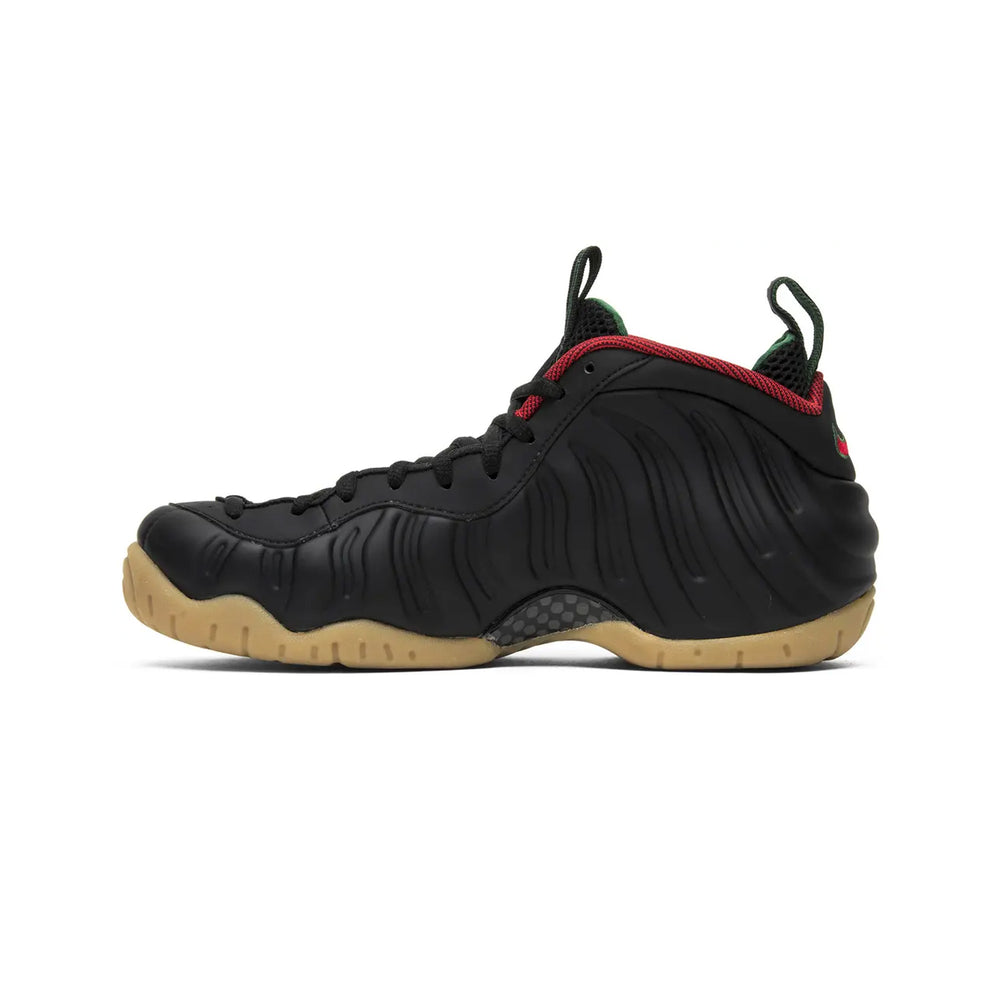 The Nike Air Foamposite Pro 'Gucci' (2015) seamlessly blends high-fashion inspiration with the bold, futuristic design of Nike's Foamposite line. This standout release merges premium materials with an eye-catching colorway, showcasing a luxurious take on one of Nike's most innovative silhouettes. Overview The 'Gucci' edition of the Air Foamposite Pro boasts a striking black Foamposite upper, complemented by a carbon fiber midfoot plate for structural integrity and lightweight performance. Rich accents of "Gorge Green" and "Gym Red" grace the inner lining, Swoosh branding, and pull tabs, offering a nod to Gucci’s signature palette. A gum rubber outsole grounds the design, delivering excellent traction while adding a stylish finish. The shoe's tonal black laces and mesh tongue enhance its streamlined look, making it equally suitable for streetwear enthusiasts and basketball players. This release is part of the Nike Foamposite legacy, renowned for its innovative molded construction and enduring impact on sneaker culture. Its Gucci-inspired colorway elevates the aesthetic, ensuring it remains a must-have for collectors and sneakerheads alike. Key Highlights • Gucci-Inspired Colorway: Features "Gorge Green" and "Gym Red" accents against a sleek black Foamposite upper, echoing luxury fashion cues. • Durable and Futuristic Design: The molded Foamposite material is known for its resilience and unique aesthetic, while the carbon fiber midfoot plate ensures stability. • Performance-Driven Outsole: A gum rubber outsole enhances grip and complements the overall design with a retro-modern touch.
